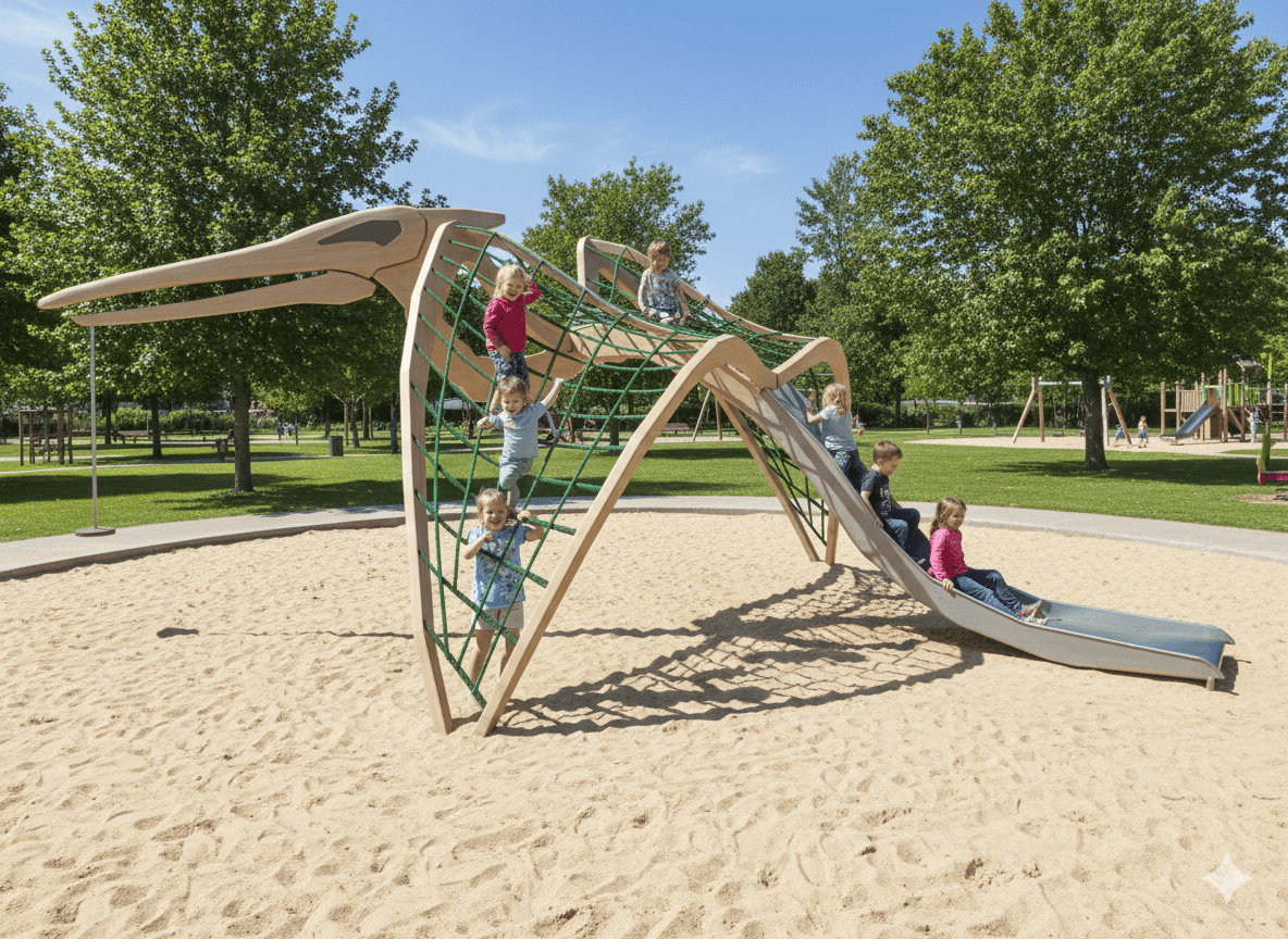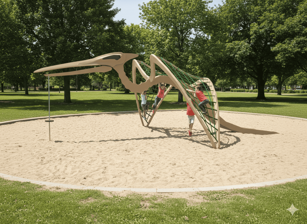 Toode on inspireeritud eelajaloolisest pterosaurusest. Konstruktsioon on valmistatud niiskuskindlast vineerist. Detailide vahele on paigaldatud terassüdamikuga köied. Vineerist detailid ühendatakse tugevate tsingitud ja pulbervärvitud metallkanduritega. Saba on lahendatud liumäena. Komplekti kuuluvad roostevabast terasest vundamendipostid.