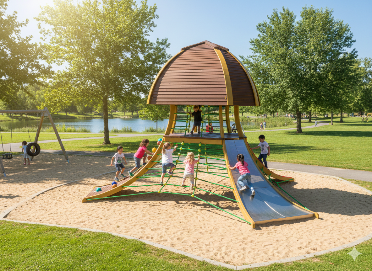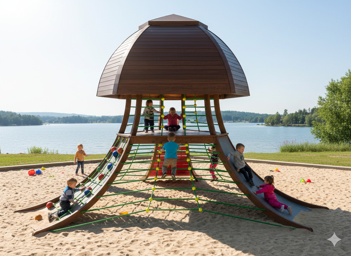 Mänguväljaku konstruktsioon on valmistatud liimpuidust, mis on tugev ja koormustele vastupidav, ning immutatud ilmastikukindla puidukaitsevahendiga. Puitosad on ühendatud pulbervärvitud metallkanduritega. Detailide vahele on paigaldatud terassüdamikuga köis. Liumäe materjali valikus on roostevaba terasplekk või plastkate. Ronimisnõlvade kattematerjaliks on sügavimmutatud höövelpuit.